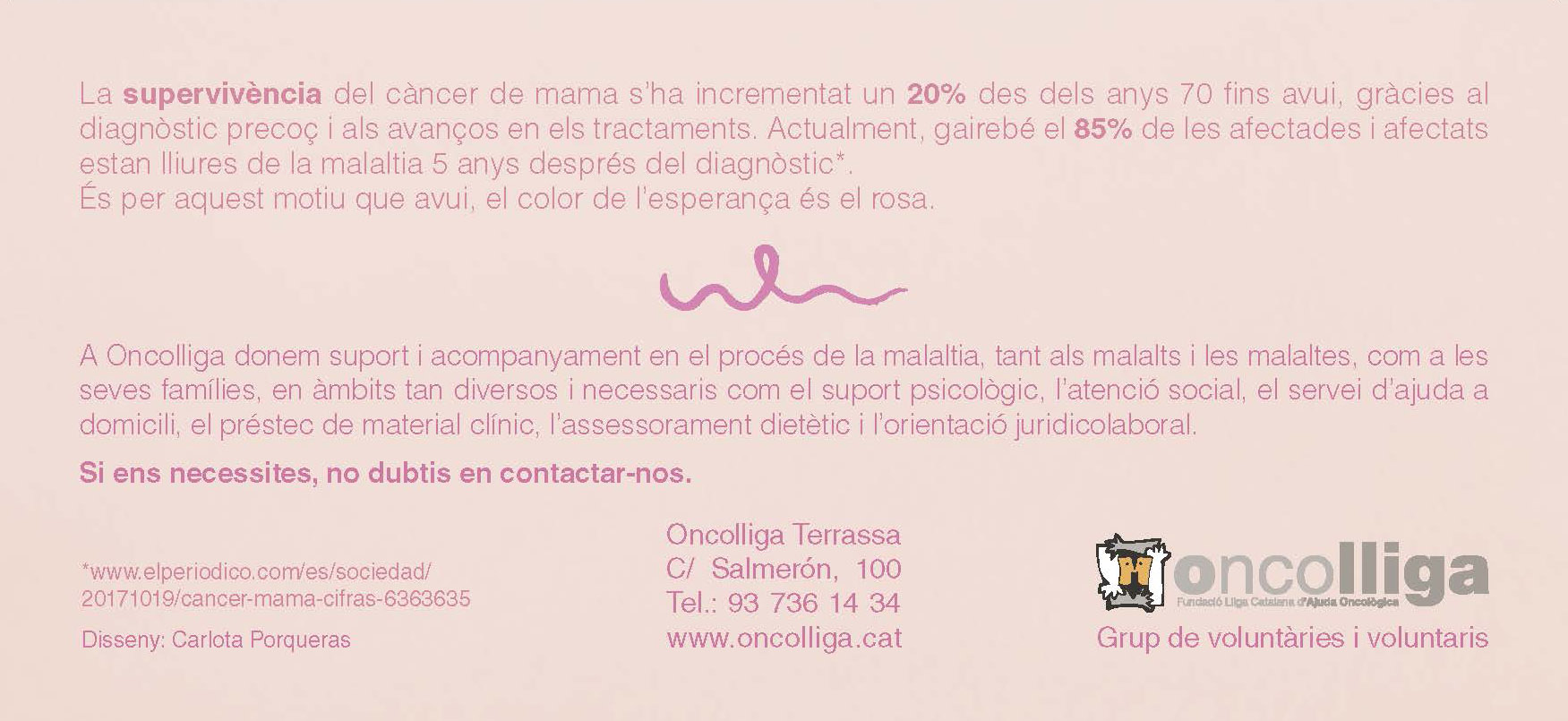 – Cal inscripció prèvia (places limitades): 608 291 882 o rubi@oncolliga.cat