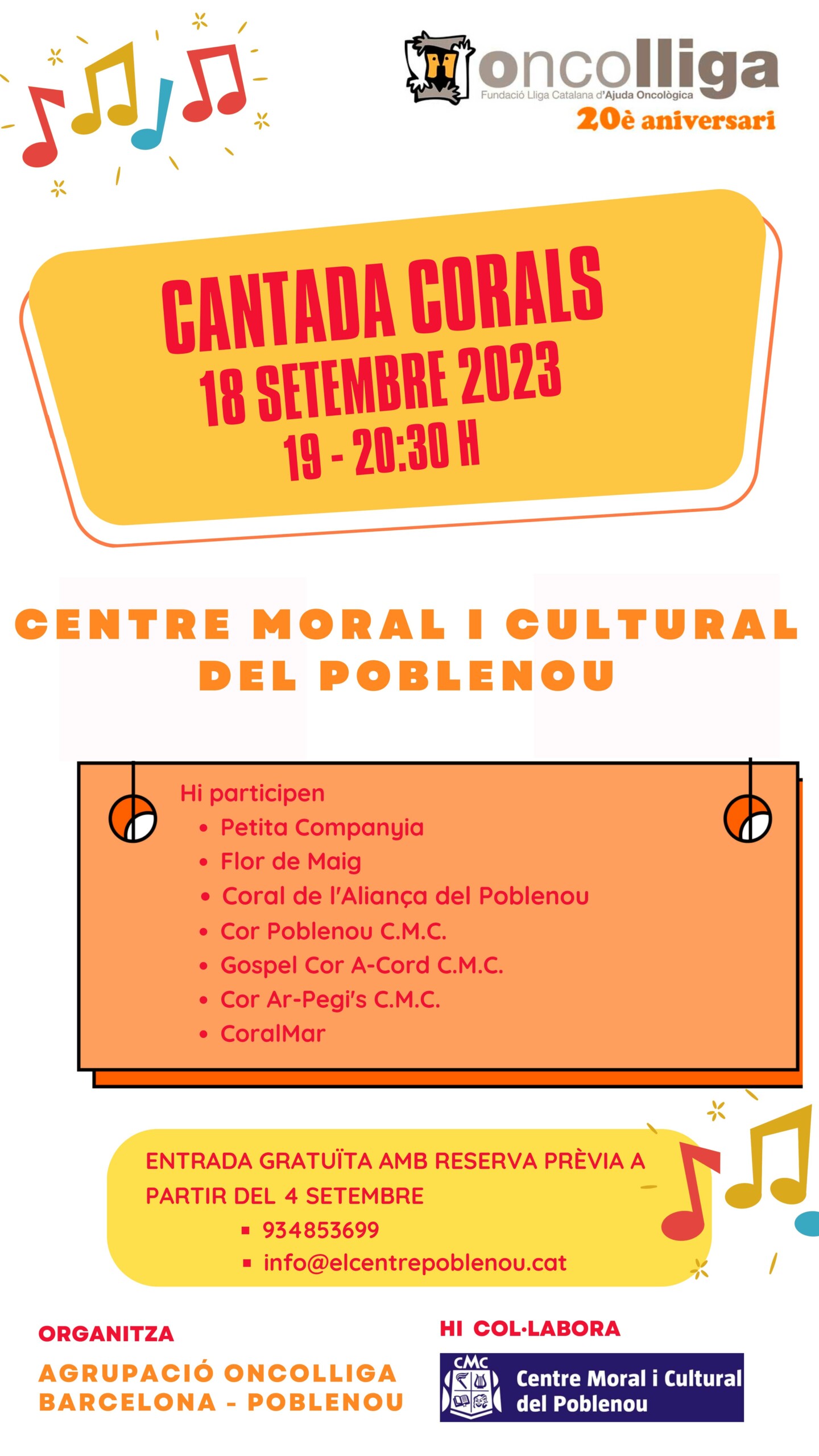 - · Lloc: Centre Moral i Cultural Poblenou