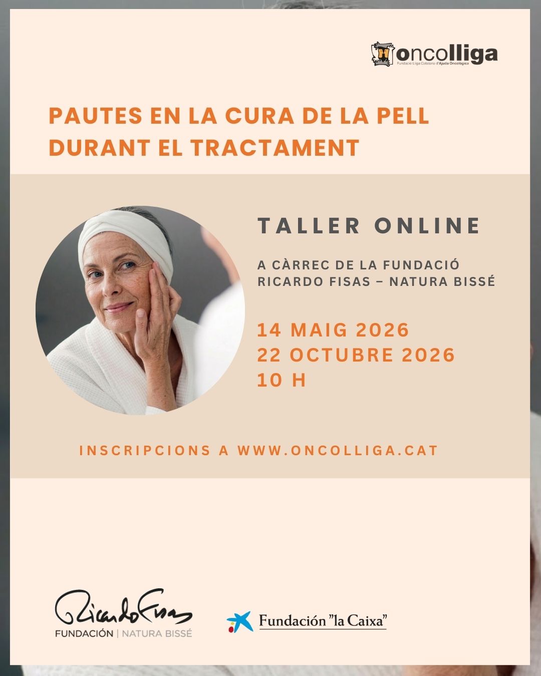 Taller de pautes en la cura de la pell durant el tractament a càrrec de la Fundació Ricardo Fisas – Natura Bissé, que assessora i acompanya en la cura de la pell en tots els moments de la vida i també quan apareix un diagnòstic de càncer, dirigit a persones amb càncer i familiars.