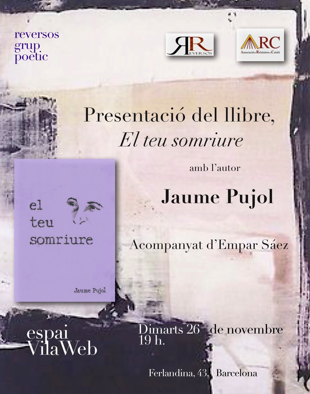 Jaume Pujol presentarà El teu somriure, de l’editorial Circulo Rojo, a Viladecavals, municipi on resideix des de fa més de 30 anys; a Campdevànol on hi va viure des de la seva infantesa; i a Terrassa.