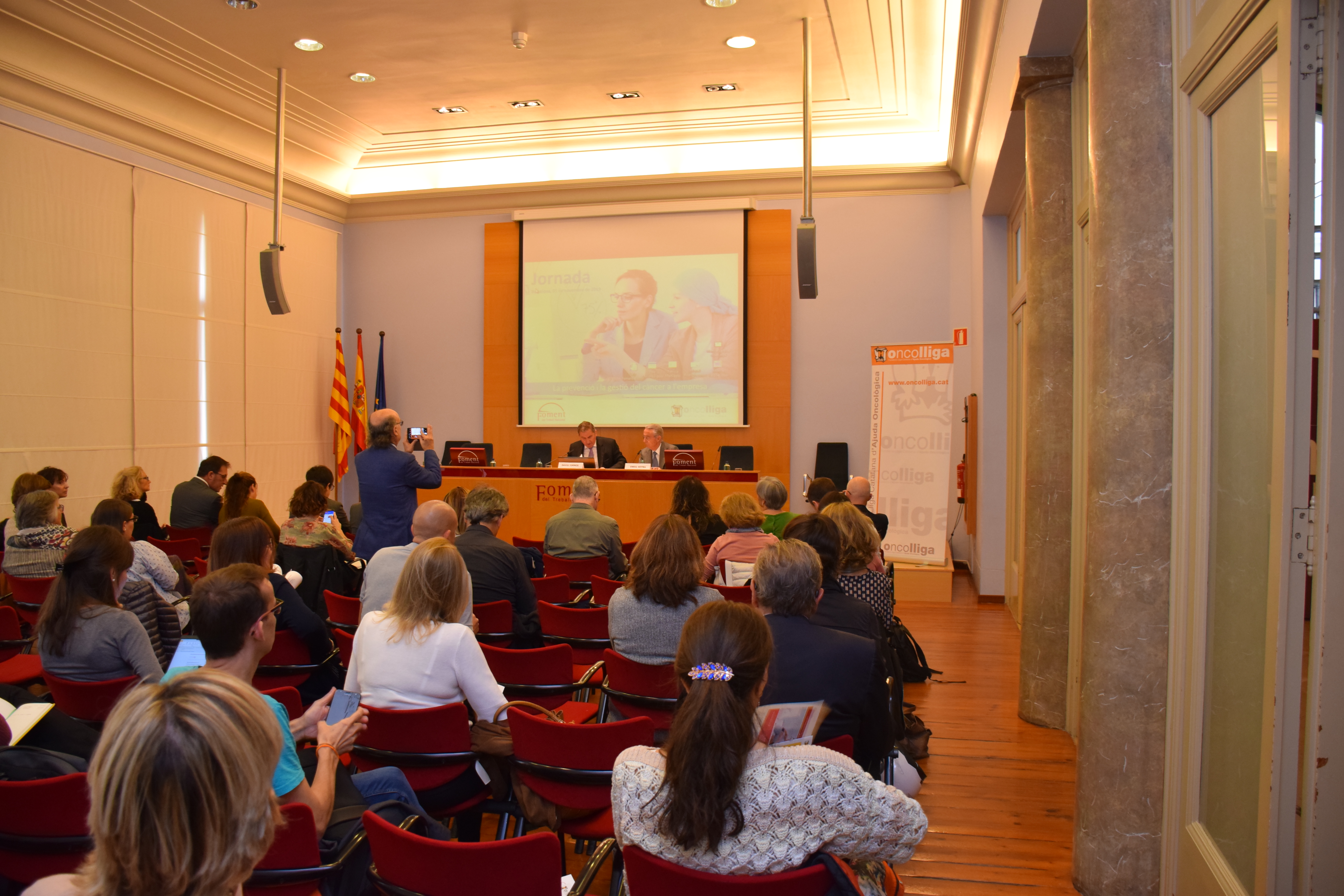L’Oficina de Prevenció de Riscos Laborals de Foment del Treball i la Fundació Oncolliga han organitzat una jornada sobre la prevenció i la gestió del càncer a l’empresa, amb l’objectiu d’ajudar a les companyies en el desenvolupament d’activitats psicosocials que contribueixin en la millora del benestar i la qualitat de vida de les persones amb càncer i els seus familiars.