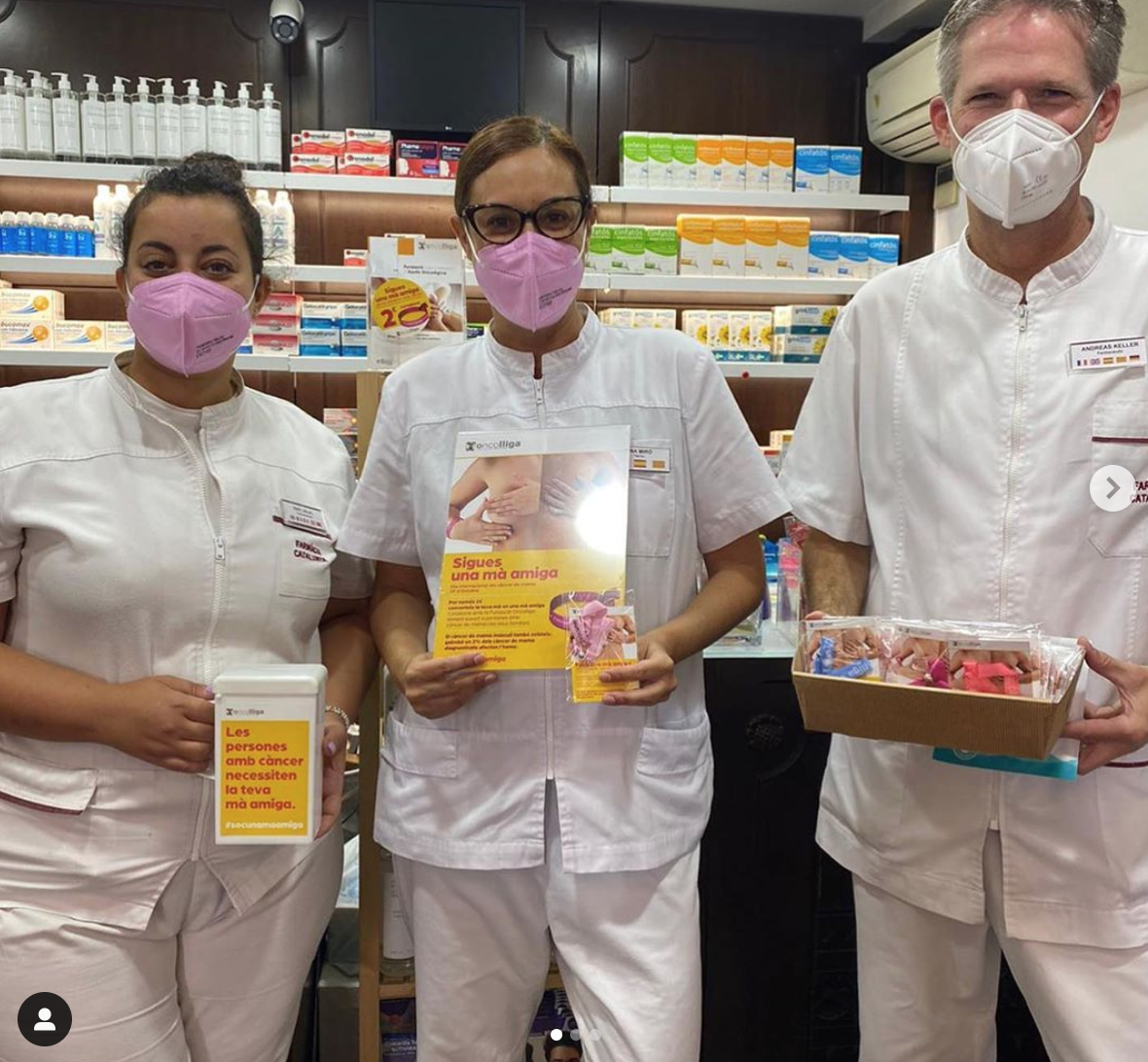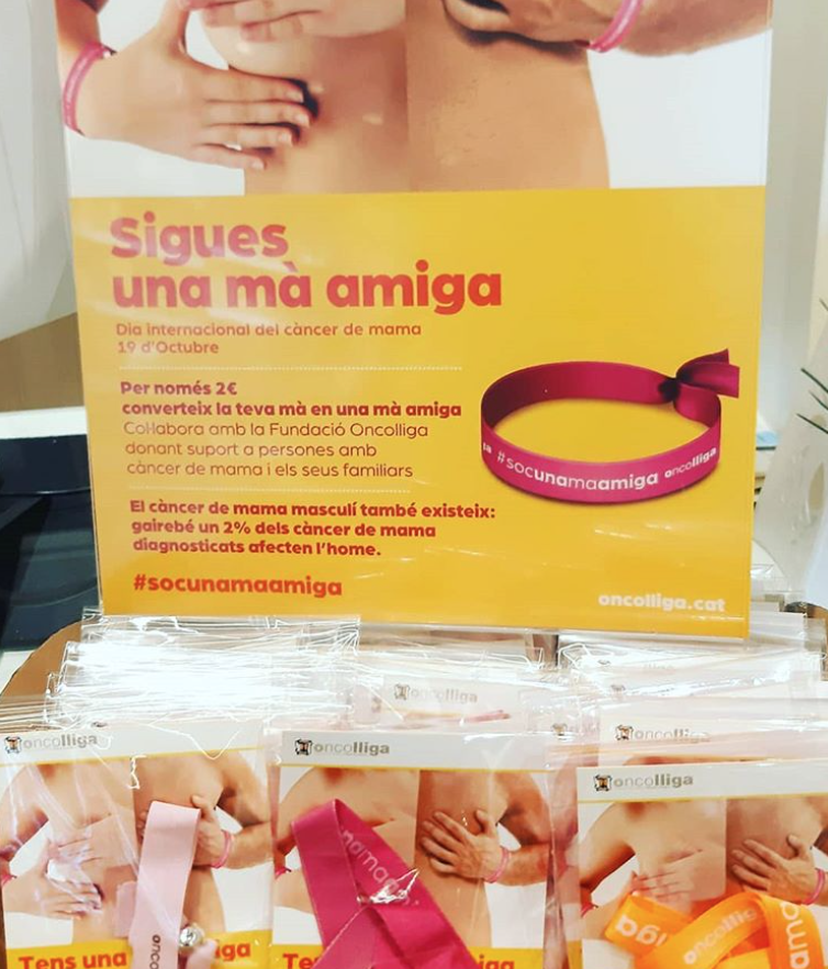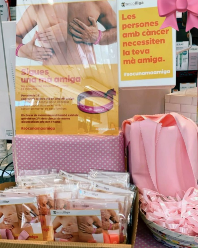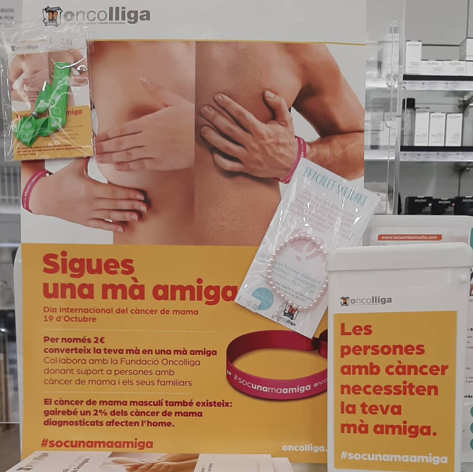 Gràcies a la col·laboració de més d’un centenar de persones voluntàries, des del 16 d’octubre, les farmàcies que es van sumar a la campanya solidària van posar a disposició de tothom polseres solidàries per col·laborar amb Oncolliga. A banda, la campanya solidària “Sigues una mà amiga” feia molt d’èmfasi a la importància de la prevenció, convidant a tothom a fer-se una exploració de les mames.
